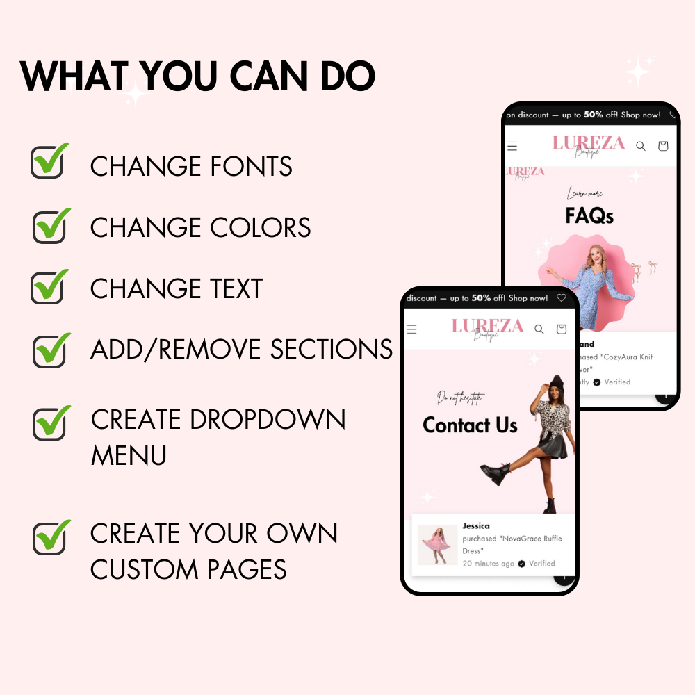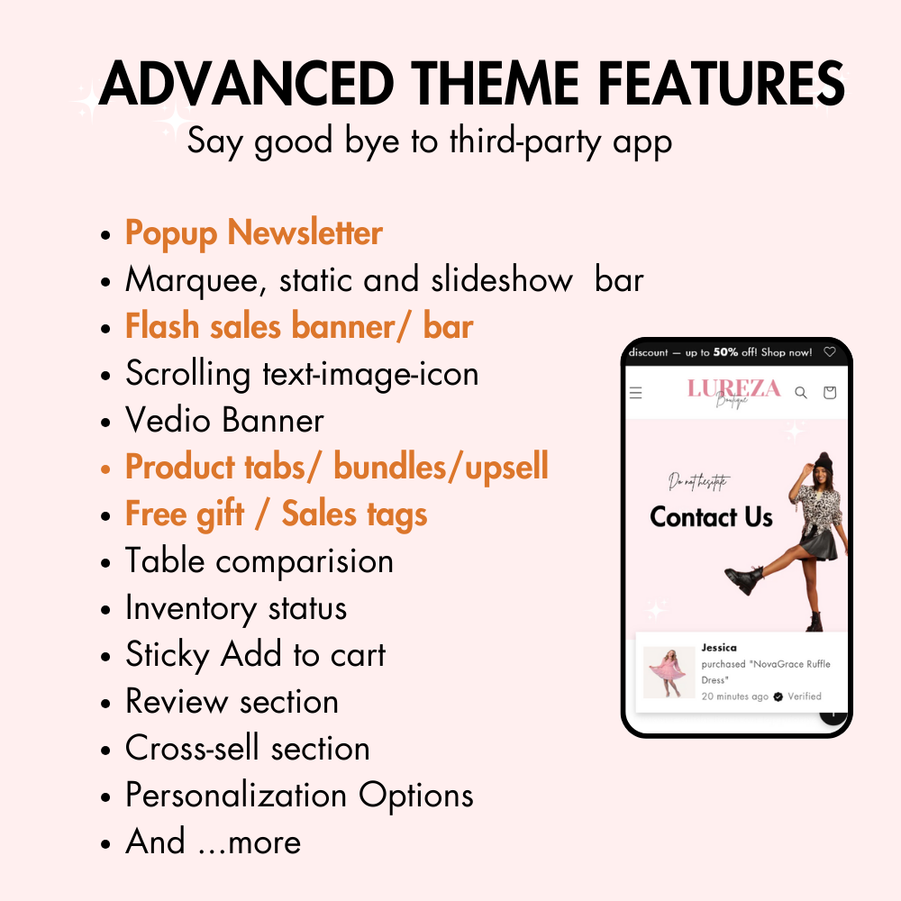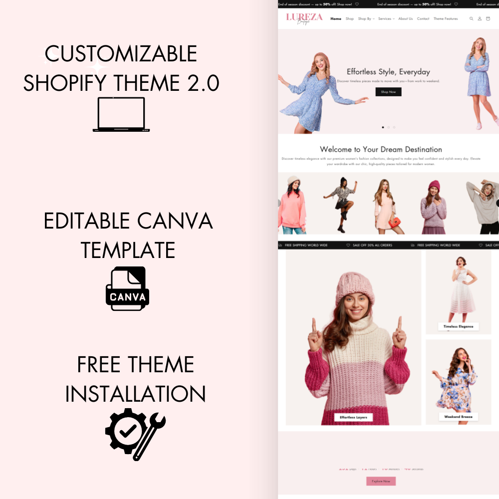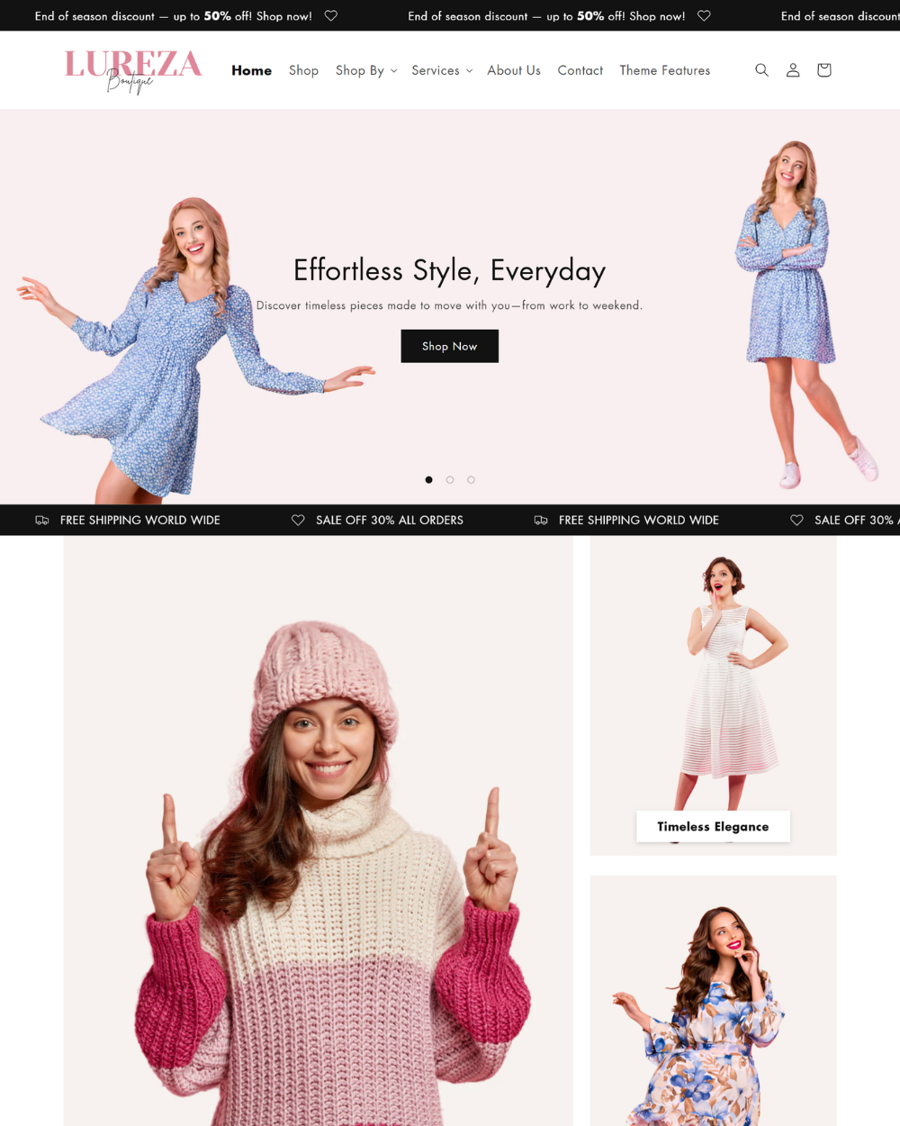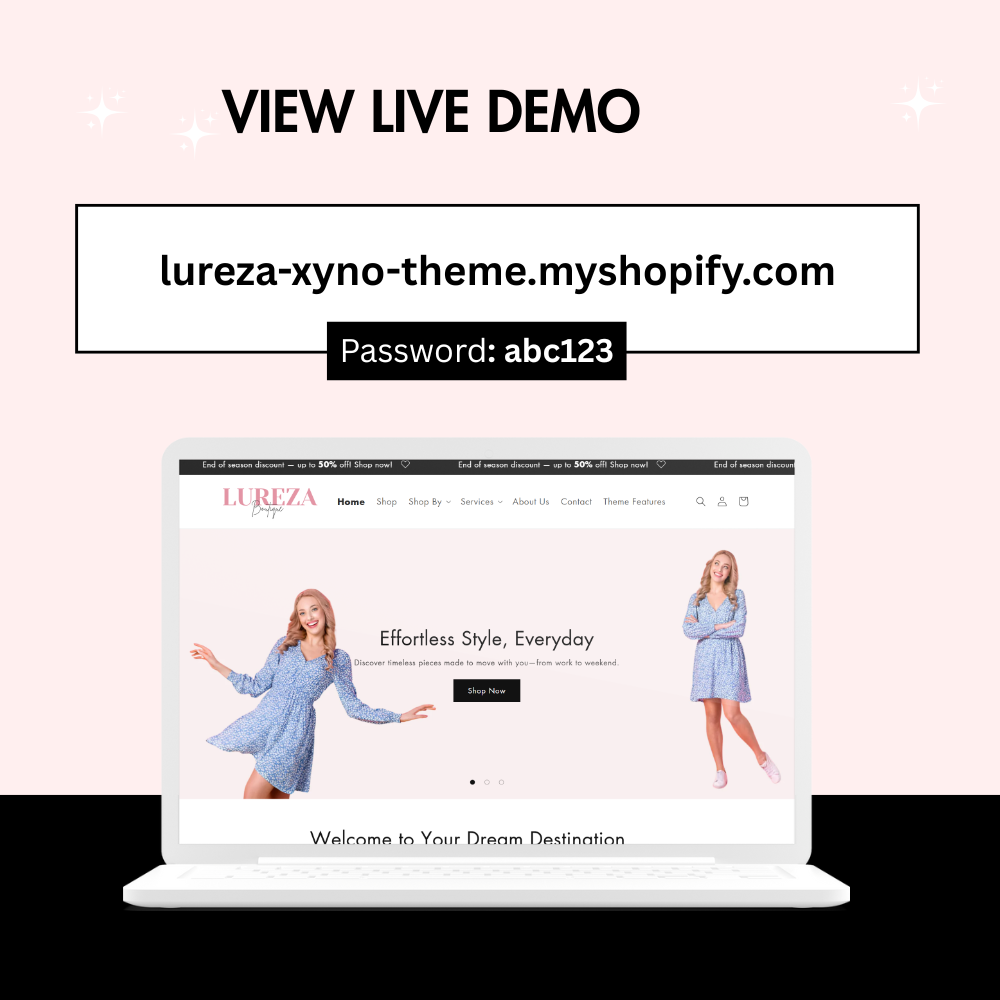 Lureza by Xynotheme is a Shopify 2.0 theme designed for women's clothing boutiques, featuring a chic pink aesthetic. With a sleek and modern design, this theme offers an effortless shopping experience and easy customization, allowing you to showcase your brand in style.