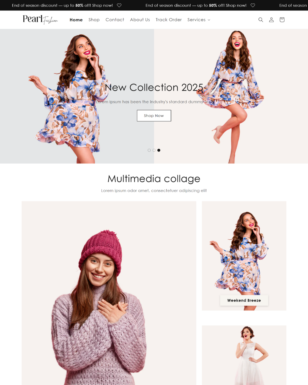 Pearl by Xynotheme is a bold Shopify 2.0 theme built for dynamic fashion brands. With its sleek black design and high-impact visuals, Pearl delivers a striking, modern shopping experience. Fully customizable and mobile-optimized, it's perfect for edgy streetwear and contemporary apparel stores.